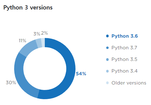더불어 JetBrain에서 2018년 Python 관련 통계자료 중 파이썬 마이너 버전별 사용 통계에서 볼 수 있듯이 3.6 버전이 압도적으로 많이 사용되고 있었다. 2018년도에는...