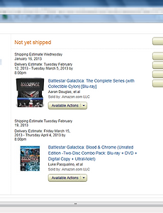 BLADEBONE/Drama8 Person of Interest Season 3 블루레이 얼마전 $22.99로 나오길래 바로 질러 버렸다. 몇 일 뒤 블랙프라이데이가 있음을 알지 못한채...이번에는 지난번과 달리 직배송으로 하였다. 지난번에는 배송료가 너무 비싸서 이하넥스 배송을 이용하였는데, 시간이 너무 많이 걸리는데다 이번 배송비는 그리 비싸지 않았기 때문이다. POI 시즌3이랑 Hitman이랑 같이 주문해서 전체 배송비가 $12.97 나왔으니 적당하게 나온것 같다. 게다가 친절한 Amazon이 나를 위해 먼저 준비된 POI 시즌3부터 보내준다고 한다. 추가 배송료 없이 말이다. 11월 23일에 주문을 하고 12월 2일에 받게 되었으니 딱 10일째 되는 날 도착하게 되었다. 지난번 Amazon free shipping 과 이하넥스 배송대행 조합은 3주가 걸렸는데 말이다. 하지만 아래 포장.. 2014. 12. 2. Person of Interest Season 1 & 2 블루레이 최근 들어 재미를 더해가는 Person of Interest 블루레이를 구매하였다. 예전에 Amazon에서 구매할려고 하였으나 때를 놓쳐 가격이 다시 높아지는 바람에 구매 시기를 한번 놓친 후 생각날 때 마다 Amazon에서 가격을 확인 하던 중 최근에 가격이 다시 낮아져 구매를 하게 되었다. 이번에는 한국으로 직배송할 때의 가격이 $20 이상 나오길래, 처음으로 배송대행이라는 걸 사용해 보았다. 한진에서 운영중인 이하넥스를 이용하였는데 이하넥스의 미국내 물류창고는 3군데 있는데 오레곤 주의 경우 미국내 세금도 제외되는 지역이기에 이 곳으로 배송을 신청하였다. 다른 곳의 경우에는 미국내 세금이 구매 가격에 포함되었기 때문이다. 여하튼 미국내 무료 배송과 배송대행, 게다가 이하넥스에서 오레곤 물류창고 런칭.. 2014. 10. 16. Firefly + Serenity + Firefly:A Celebration(Book) 개봉기 지난 주 뜬금없이 Firefly 블루레이를 사야겠다는 생각이 들어 Amazon에서 Firefly를 주문하였다. 사실 Firefly와 Serenity만 있었더라면 지름신이 오지 않았을텐데 책(Firefly: A Celebration - Anniversary Edition)까지 포함해서 $59.20에 판매하고 있어서 이 정도면 살만하다는 생각이 들어 주문을 하게 되었다. 게다가 블루레이에 포함된 부가 영상(special feature)에 대한 궁금증도 있었고 말이다. 그러나 왠걸 배송비가 생각보다 비싸게 나왔다. 원래 일반 배송의 경우 아시아 지역은 도서 1권이랑 CD/DVD/Blu-ray의 2개인 경우, 기본 $4.99에 아이템$4.99 이므로, 총 $19.96이 나와야 하는데 이번 경우에는 $29.24가.. 2014. 6. 12. Continuum 시즌 별 에피소드 제목들... 이제까지 아무 생각없이 봐 왔던 드라마 Continuum의 IMDb 정보를 보던 중 생각지도 못 했던 통일성이 있어서 적어 본다. 우선 이 드라마는 장르가 "액션/스릴러/SF"로...일단 시간 여행과 함께 음모론이 결합되면서 점점 내용이 복잡해 지는 중인 드라마이다. 핵심 내용은 미래(2077년) 기업이 모든 것을 장악한 사회에서 경찰관 비슷한 일을 하던 여주인공, 키아라 카메론(Rachel Nichols)이 테러리스트들과 함께 2012년으로 오게 되면서 다시 자신의 시대로 돌아가기 위해 개고생(?)하는 이야기이다. 그러나 시즌이 거듭됨에 따라 음모론이 결합되면서 점점 내용이 복잡해지고 있는 드라마이다. 여하튼 중요한 것은 이제까지 각 에피소드 제목을 주의깊게 보지 않아서 몰랐었는데, 오늘 IMDb 내용.. 2014. 5. 27. Battlestar Galactica Complete Series (with Collectible Cylon) [Blu-ray] 개봉기 드디어 오매불망 기다렸던 BSG(BattleStar Galactica)가 도착하였다. 한글 자막 지원이 되지 않아 영어 자막으로 봐야 하겠지만, 이미 내용을 다 알고 있으니 한글 자막이 없어도 큰 문제는 없을 것 같아서 소장용으로 구매한 것이다. 원래는 BSG: Blood and Chrome 예약 구매랑 함께 해서, 같이 배송될 줄 알았는데 착한(?) Amazon께서 추가 배송 비용없이 현재 나와 있는 BSG 합본부터 보내 주었다. 첨에 메일 받았을 때는 2월 초에 온다고 하였는데 주문하고 보름만인 1월 31일 도착을 하였다. 기대보다 더 빨리 도착하니 깜짝 선물을 받은 것 마냥 기분이 좋다. :) 관련글 및 BSG: Blood and Chrome Webisode 보러가기: 2013/01/17 - Bat.. 2013. 2. 1. Battlestar Galactica Complete Series 구매 및 BSG: Blood and Chrome 예약 끝내 지르고 말았다. 계속 살까 말까 살까 말까....고민하다가... 200달러 정도야 하는 맘으로 질러 버렸다. BSG: Blood and Chrome은 미국 시간으로 2013년 2월 19일 방송과 함꼐 출시하니 아직 한참을 기다려야 한다. 구매 화면에서도 보니 BSG 전체 시즌 Blu-ray의 경우 예정일이 3월 5일이며, BSG: Blood and Chrome의 경우 4월 4일로 나와 있다. 맘 편하게 4월 초에 받는다고 생각하면, 약 3개월 가량은 Amazon으로부터 택배 오는 것을 기다리며 즐거운 나날을 보낼 수 있을 것 같다. ^^ . . . 근데 자막은...어떡할지...그냥 영어로 버텨야 할 듯 하다. 보너스로 BSG: Blood and Chrome 예고편으로 마무리~ (아래는 웹비소드 전편.. 2013. 1. 17. 이전 1 2 다음