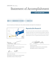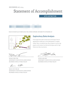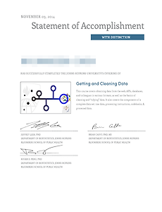 Data Science4 Coursera - Reproducible Research 강좌수료 Reproducible Research는 이전 강좌에 비해 상당히 난이도가 높아졌다. 각 주차별 Quiz는 이전과 큰 차이가 없었지만, course project의 경우 간단한 형태로 답이 있는 문제도 아닐 뿐더러 영어로 보고서를 작성해야 하기 때문에 상당한 노력이 필요하였다. 매일 1~2시간 정도 투자한 결과, 무사히 강좌를 수료할 수 있었다. 이번 강좌는 재현 가능한 연구(reproducible research)에 대한 강좌로 통계뿐만 아니라 실험을 수행하는 모든 이들이 고민해야할 부분으로 reproducible research를 위해 어떠한 과정들이 필요한지를 대략적으로 소개해 주었다. 특히 R을 사용한 실험에 있어 'R Markdown' 및 'knitr' 그리고 'RPubs' 등의 다양한 도구들을.. 2015. 1. 31. Coursera - Exploratory Data Analysis 강좌수료 이제 벌써 12월이다. 지난 9월부터 시작된 Data Science Specialization 과정이 중반부에 다다랐다. 강의 난이도는 처음에 비해서는 높아졌지만, 바로 이전 강좌에 비해서는 조금 쉬웠다. Exploratory Data Analysis 강좌에서는 주어진 데이터를 그래프나 산점도를 이용해 출력하고, 기본적인 군집화(클러스터링) 기법을 적용한 후 그 결과를 관찰하는 과정으로 강좌가 진행되었다. 실제 데이터의 출력에 있어서는 MATLAB보다 R이 보다 편하고 예쁘게 출력할 수 있었다. 특히 ggplot2를 활용한 출력의 경우, 다양한 범주의 데이터를 출력하는데 있어 factor 변수를 이용하여 쉽게 출력할 수 있어 상당히 유용하다고 생각되었다. 동일한 데이터를 MATLAB에서 출력한다면 'ho.. 2014. 12. 9. Coursera - Getting and Cleaning Data 강좌수료 9월에 이어 지난 10월에는 Coursera의 Getting and Cleaning Data 강좌를 수강하였다. 확실히 지난번 강의에 비해 난이도가 증가됨을 느낄 수 있었다. 사실 내용만 봐서는 본격적으로 데이터 분석이 시작된 것도 아닌데 quiz나 course project의 난이도가 어려워졌다. 특히 course project의 경우, 이전과는 달리 최종 결과물에 대한 정보가 자세히 주어지지 않고 최종 결과물을 획득하기 위해 수행해야할 과정만을 언급해 두었는데 여러 의미로 해석될 수 있어 course project 포럼에서도 많은 수강자들이 멘붕에 빠져 뭘 해야하는지 모르겠다며 글들이 올라왔다. 사실 나도 처음에는 별거 아니겠거니 하다 마지막까지 꽤 고생을 했다. 어떻게 진행해야 할 지 갈피를 잡지 .. 2014. 11. 7. Coursera - The Data Scientist's Toolbox, R Programming 강좌 수료 지난 9월 Coursera에서 2개의 강좌를 동시에 수강하고 이를 잘 마무리하였다는 수료증을 받게 되었다. 지난번에는 Python에 대한 강좌를 수강하였는데 이번에는 조금 더 체계적으로 한 분야를 파고 들고자 Johns Hopkins University에서 제공하는 Specialization 과정인 Data Science의 처음 두 과목을 수강하게 되었다. 원래는 첫 번째 과목만 신청하였으나 내용이 짧고 쉬워서 일주일만에 모든 강의 영상과 과제를 마무리하게 되어, 두 번째 과목까지 추가로 신청하여 마무리 하게 되었다. 이로써 총 3개의 과목을 수강하고 완료하게 되었다. < R Programming 수료.. 2014. 10. 15. 이전 1 다음